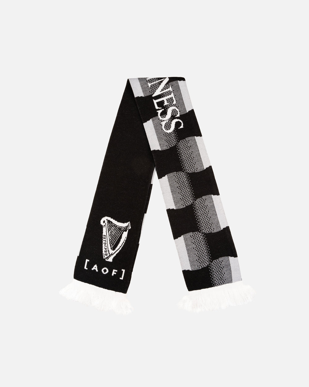 Wrap yourself in the spirit of the game with the Art of Football x Guinness scarf. Featuring a stylish black and grey design, this cozy scarf keeps you warm while showing off your love for football and Guinness in perfect harmony.
