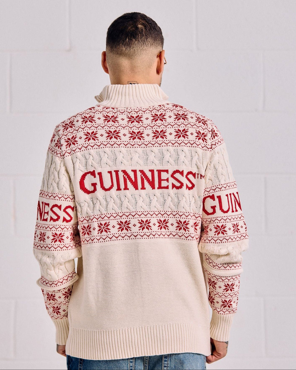 Cream Red Guinness Christmas 1/4 Zip Sweater