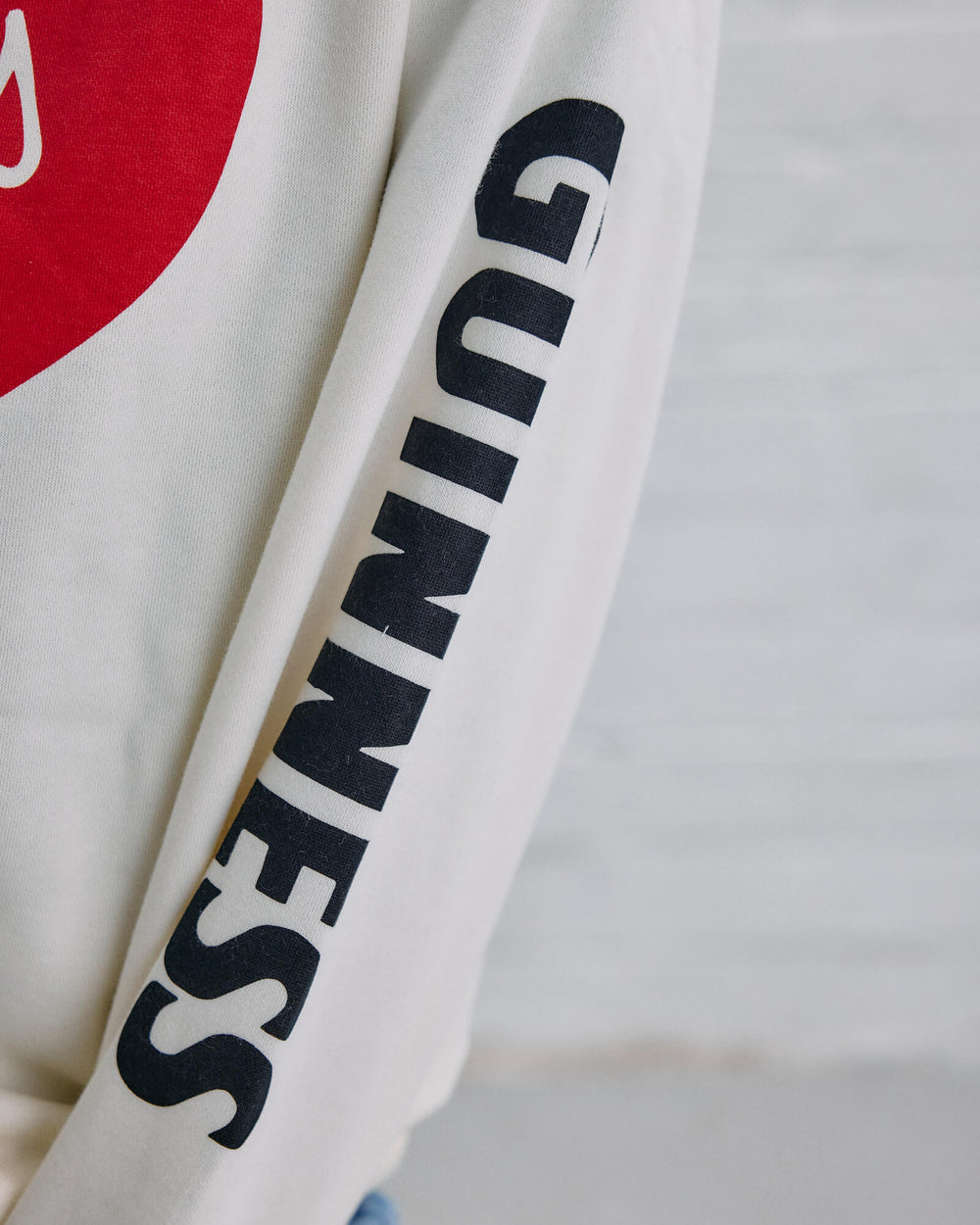 Brighten up any day with our Guinness Lovely Day White Sweatshirt. This playful and quirky sweatshirt features the iconic Guinness logo and a fun "Lovely Day" graphic in a red heart. Stay stylish and comfortable in this white sweatshirt, perfect for any casual occasion.