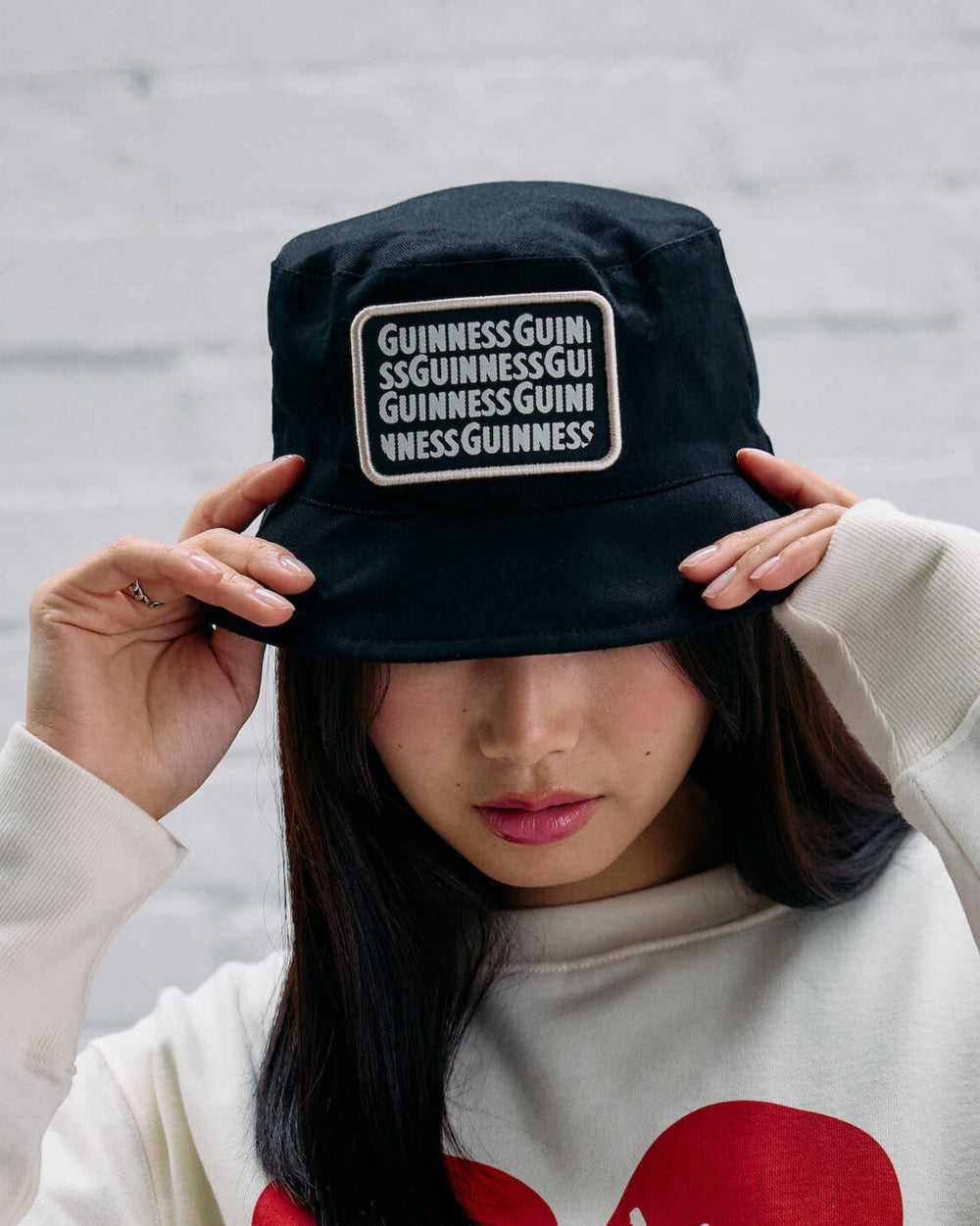 Stay stylishly shaded with the Guinness Black Lovely Day Bucket Hat. Featuring the iconic Guinness logo and a classic bucket hat design, this hat is the perfect addition to any casual outfit.