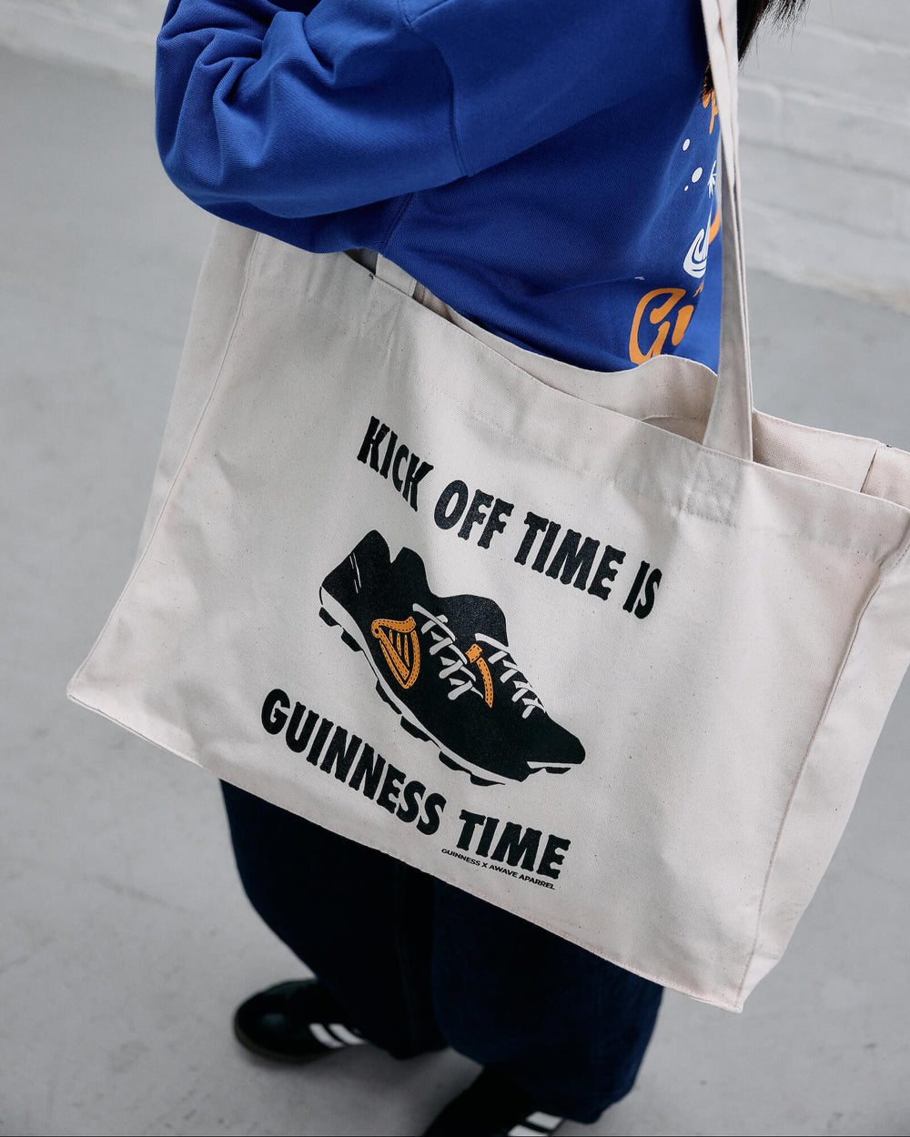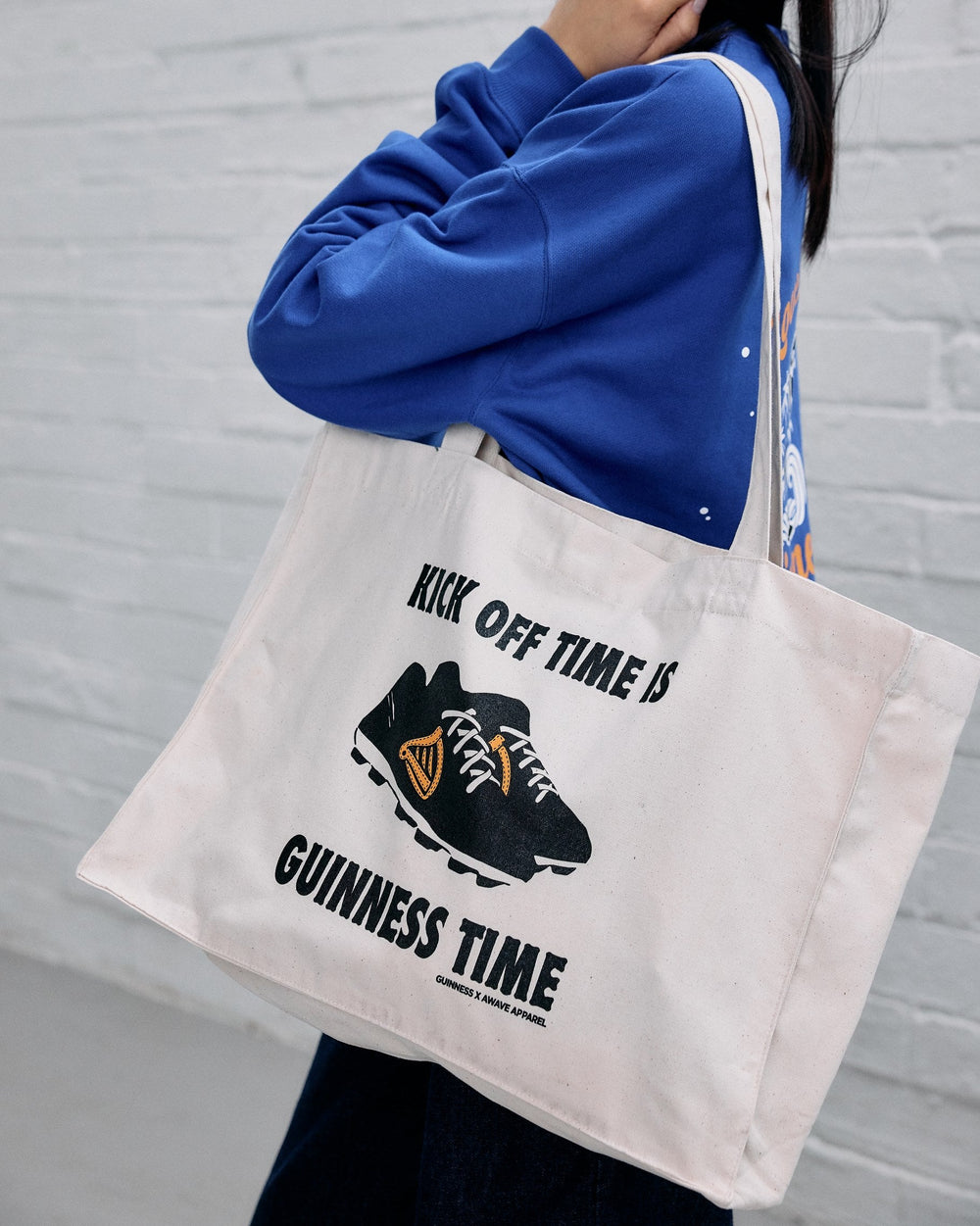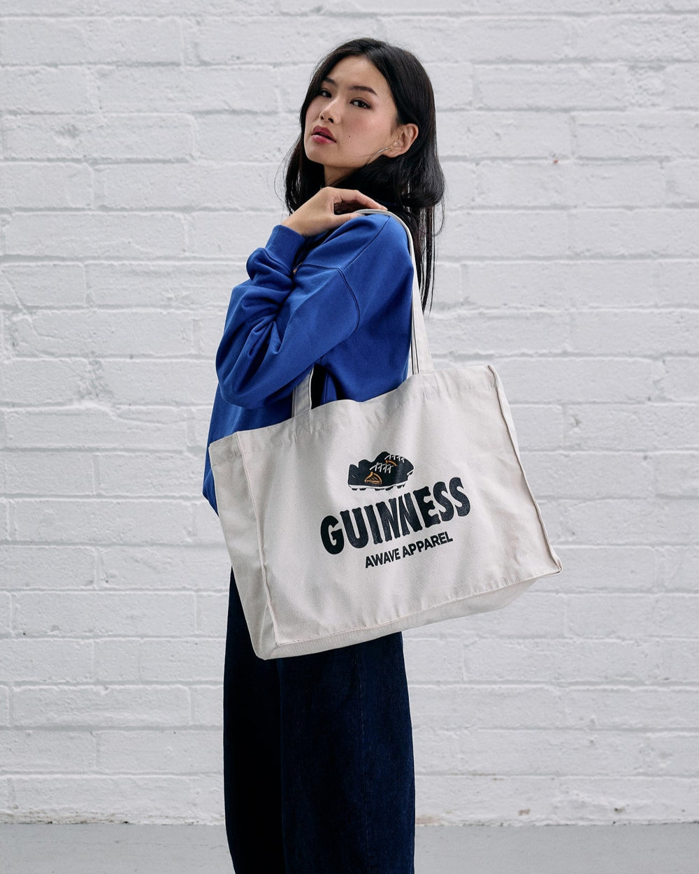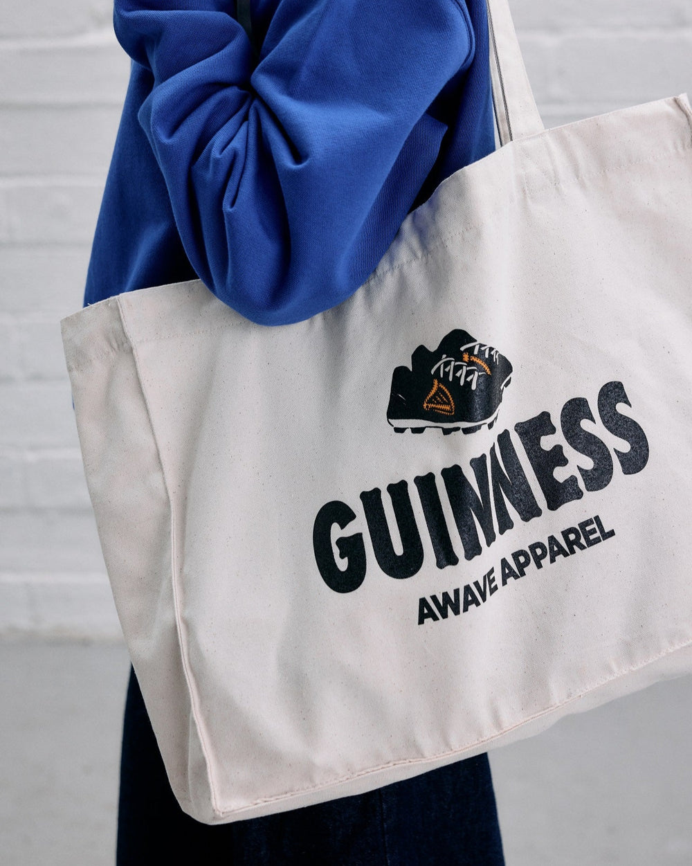 Get ready to kick off your day with the Awave Kick Off Time Tote Bag, a fun and durable product from the collaboration between Guinness and Awave Apparel. Perfect for grocery runs or carrying your essentials, this bag holds plenty and stands up to everyday use thanks to its strong material and lasting screen print. Featuring a stylish Guinness logotype and a playful twist on the famous Guinness Time slogan—now “Kick Off Time is Guinness Time”—it captures the sporty spirit at the heart of Awave’s vision. Carry your stuff with a winning attitude!