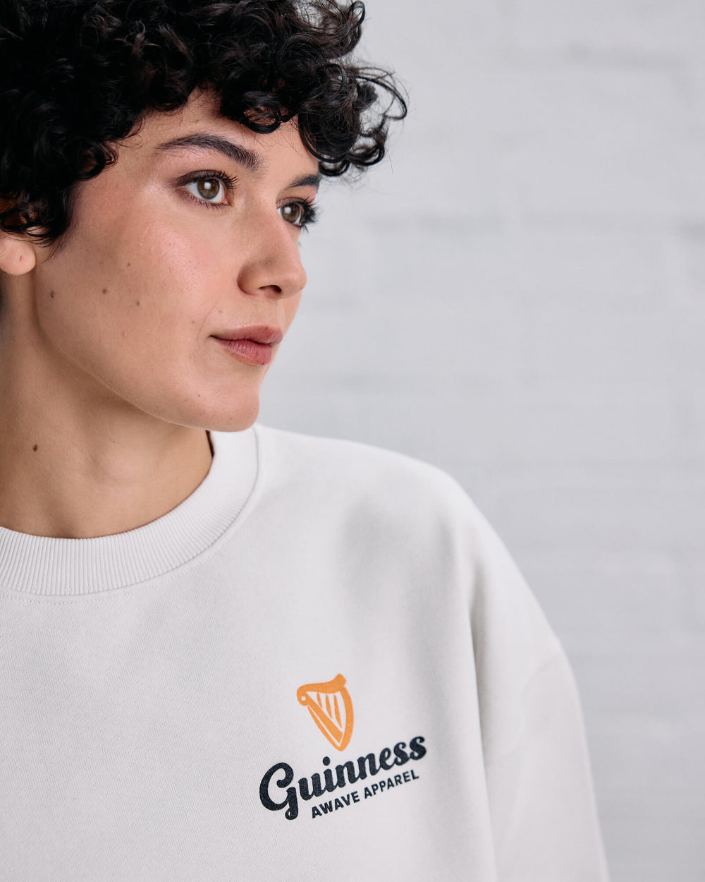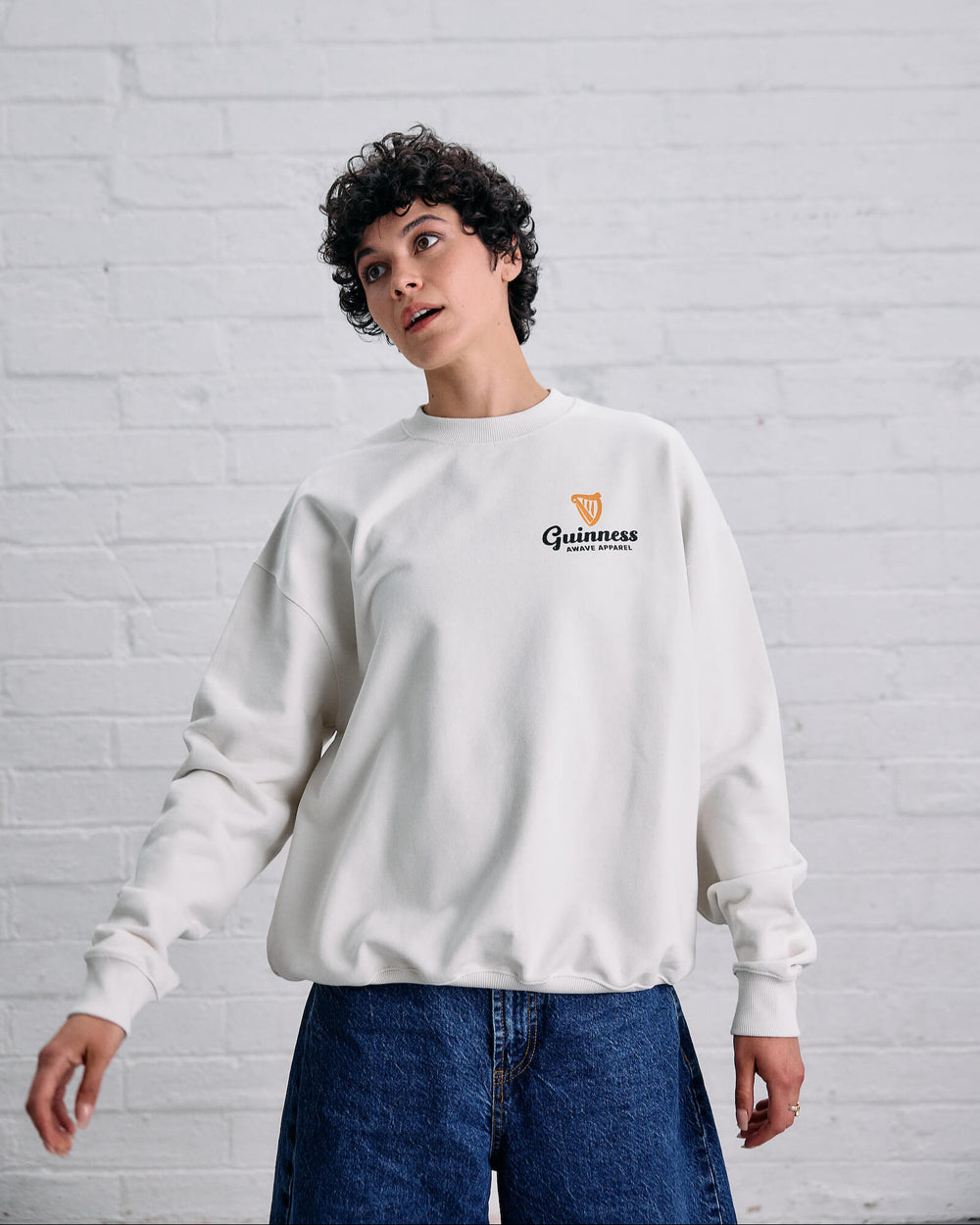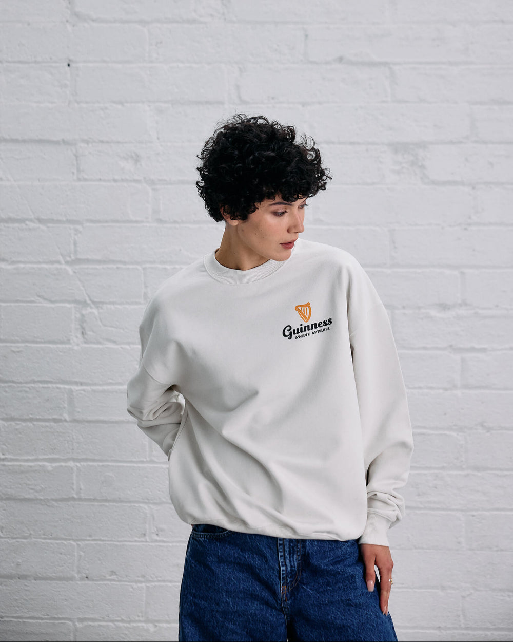Guinness has teamed up with Awave Apparel to create an exclusive collection for the Guinness Storehouse in Dublin, Ireland. Introducing the stylish and comfortable Cream Milk Carton Sweatshirt, designed by Awave Apparel and crafted from high-quality cotton. This sweatshirt ensures both comfort and breathability. The sweatshirt is a heavyweight French Terry fabric at 460gsm, with double-stitched shoulders and an oversized fit. The front features an artistic Guinness logo, while the back showcases a quirky, stylized milk carton, attesting to the quality and creaminess of the classic Guinness beverage. All designs are screen printed for durability, ensuring they last through countless wears. Experience the fusion of iconic branding and innovative design with this standout addition to your wardrobe.