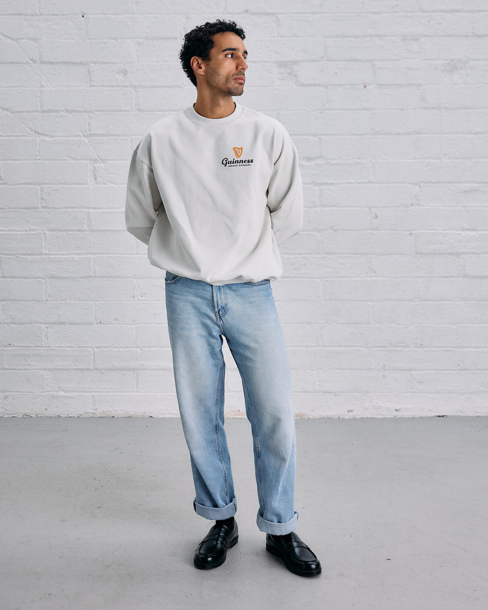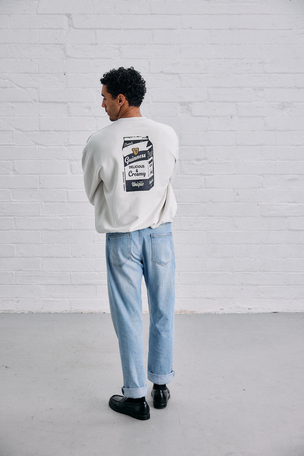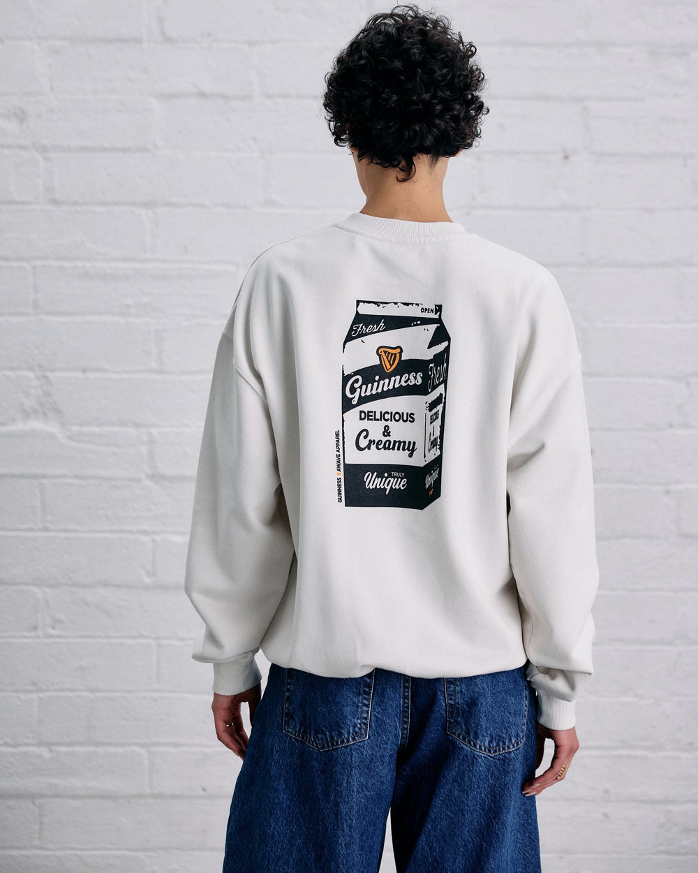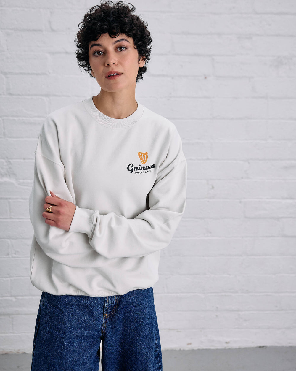 Guinness has teamed up with Awave Apparel to create an exclusive collection for the Guinness Storehouse in Dublin, Ireland. Introducing the stylish and comfortable Cream Milk Carton Sweatshirt, designed by Awave Apparel and crafted from high-quality cotton. This sweatshirt ensures both comfort and breathability. The sweatshirt is a heavyweight French Terry fabric at 460gsm, with double-stitched shoulders and an oversized fit. The front features an artistic Guinness logo, while the back showcases a quirky, stylized milk carton, attesting to the quality and creaminess of the classic Guinness beverage. All designs are screen printed for durability, ensuring they last through countless wears. Experience the fusion of iconic branding and innovative design with this standout addition to your wardrobe.