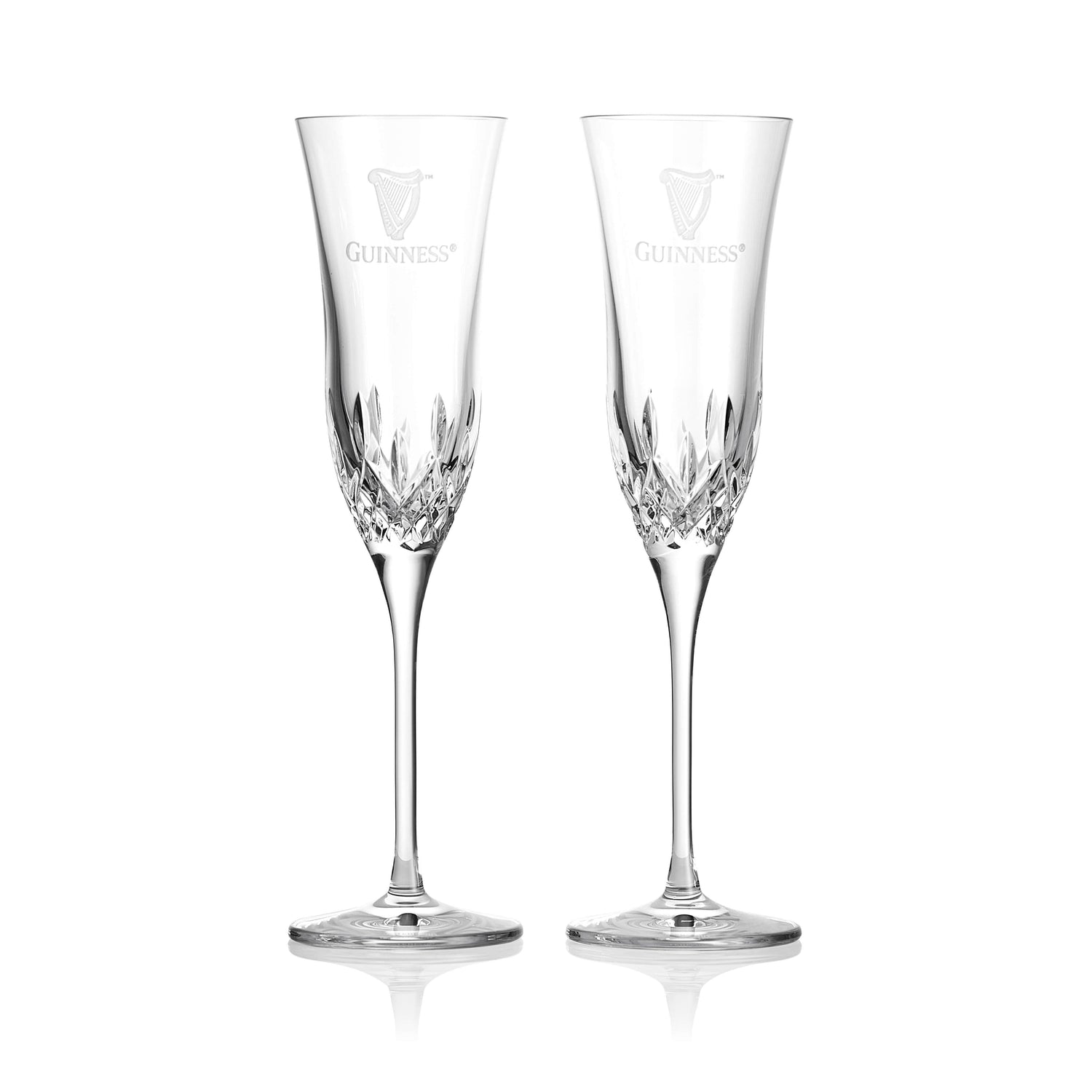 Expertly crafted by Waterford, the limited-edition Guinness x Waterford Lismore Essence Champagne Flute Set elevates every toast with the spirit of Ireland. These two crystal flutes are designed to enhance the enjoyment of sparkling wines and champagnes, balancing exquisite form with function. Each flute is expertly sandblasted with the iconic Guinness logo, celebrating a 60-year heritage between Guinness and Waterford. Whether for special celebrations or as a gift, these flutes add an elegant touch to any occasion.