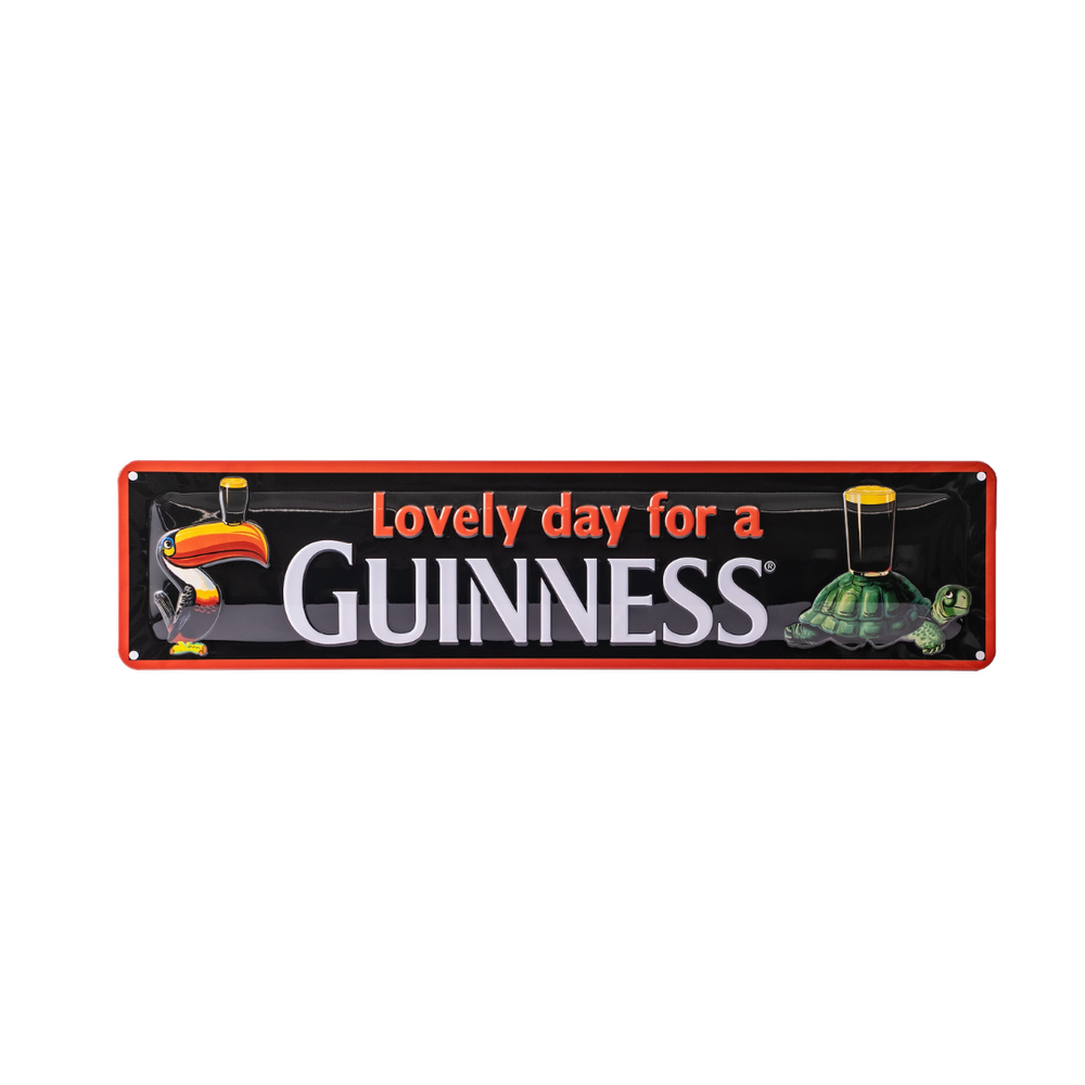 Liven up any home bar or kitchen with this bold wall decoration! The Guinness-branded Metal Sign features the iconic toucan and tortoise design by the legendary John Gilroy and is made from high-quality metal for an eye-catching addition to any space. So don't wait—put a little 'Cheers!' in your home today!