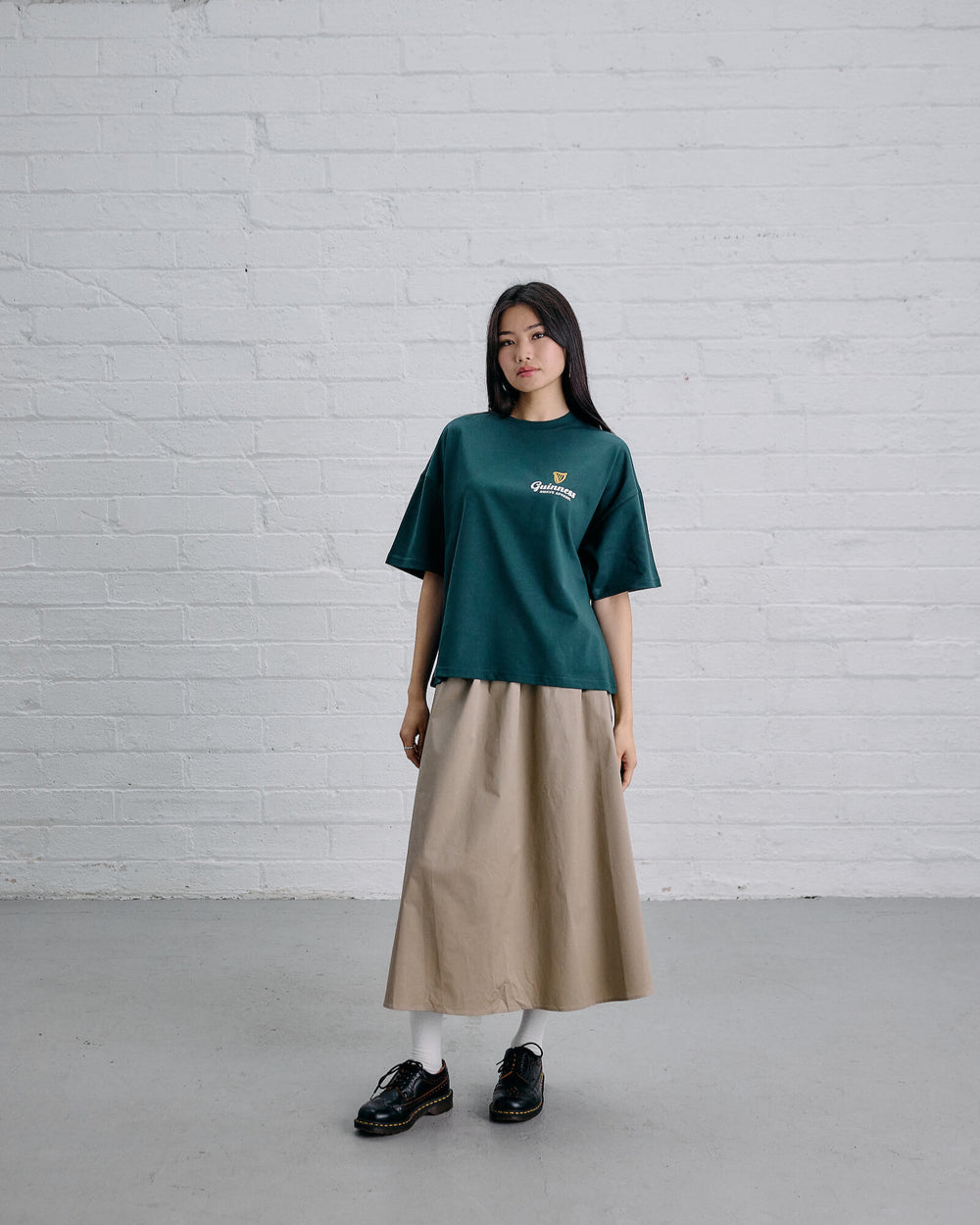 Guinness has teamed up with Awave Apparel to create an exclusive summer collection for the Guinness Storehouse in Dublin, Ireland. Introducing this stylish and comfortable green T-Shirt, designed by Awave Apparel. This unique piece elevates Guinness branding to a personalized and stylized level. Crafted from high-quality materials, the T-Shirt ensures both comfort and breathability, making it perfect for a sunny day in Dublin. It is a heavyweight jersey fabric at 240gsm, with dropped shoulders and a boxy, oversized fit. The front features an artistic Guinness logo, while the back showcases an iconic pub design that captures the essence of enjoying a pint of Guinness in the traditional Irish setting. All designs are screen printed for durability, ensuring they last through countless wears. Experience the fusion of iconic branding and innovative design with this standout addition to your wardrobe.
